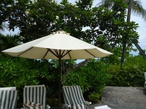 プールサイドのチェアーもハイアットだとパラソルの下が確保できます。