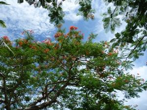 満開のフレームツリーは本当に炎が燃えるように赤く見えます。