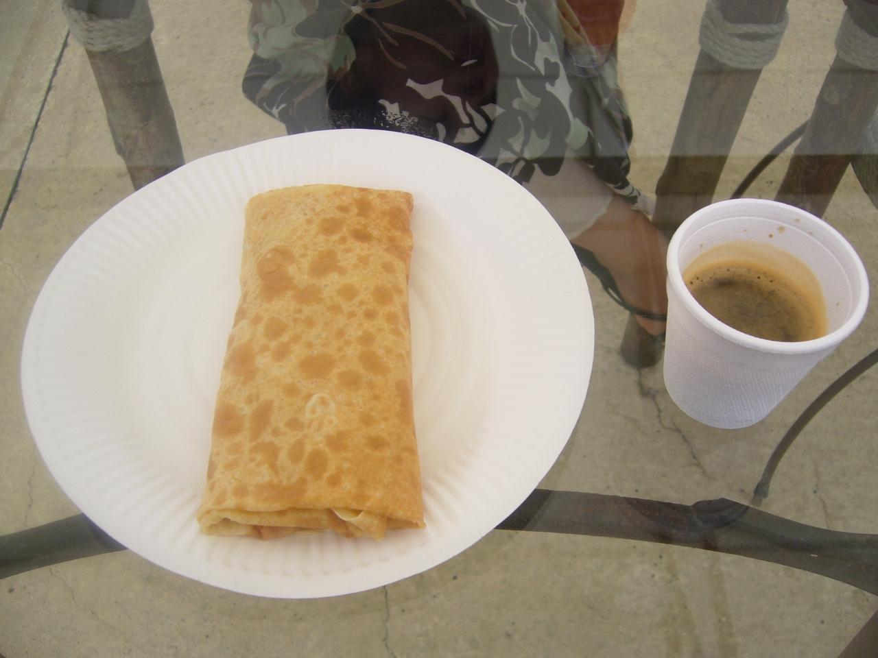 旦那はコーヒー&ソーセージクレープ。