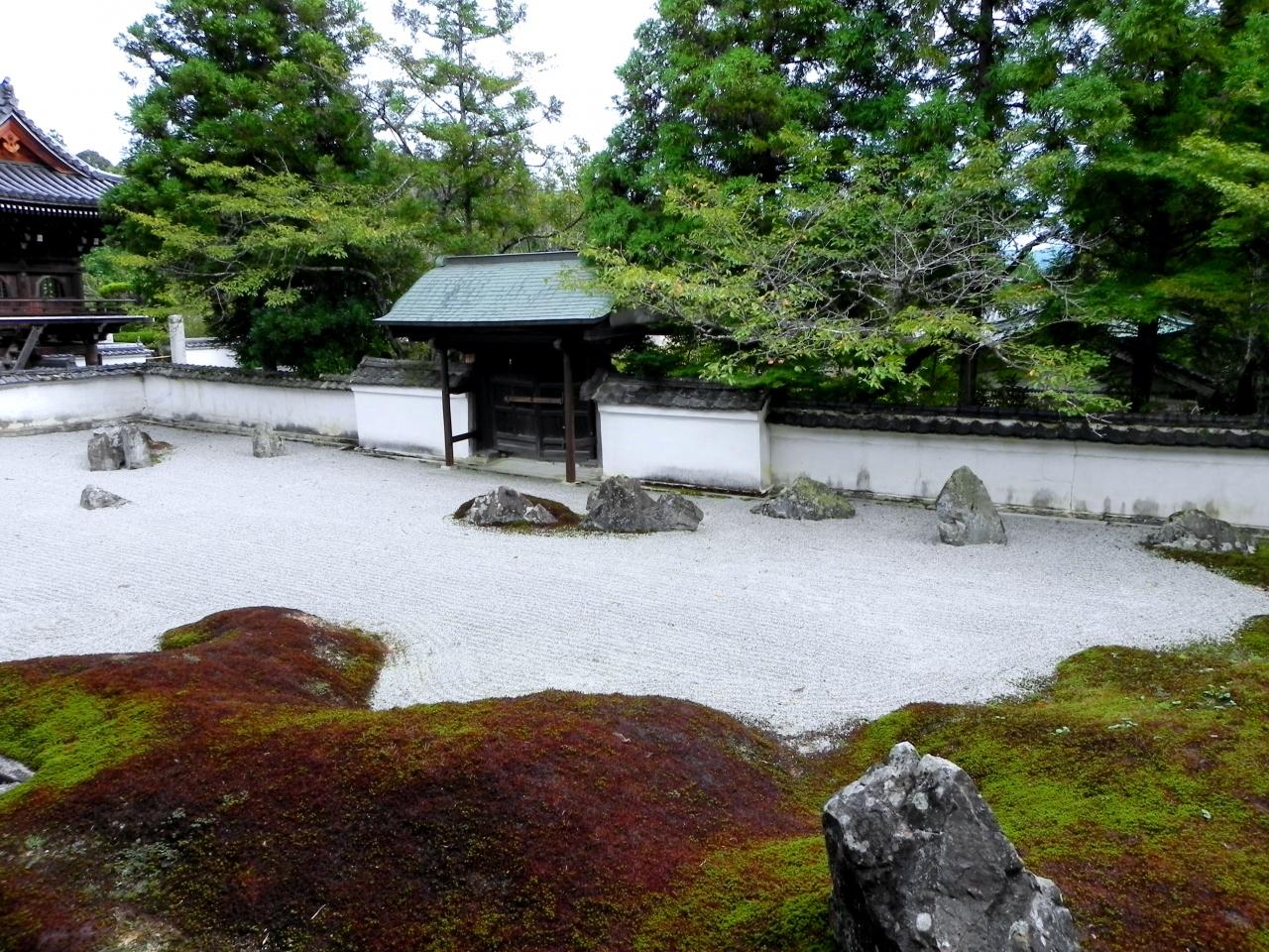 南側には石庭もあるのですが残念なことに、この暑さで苔が茶色くなっていました。
