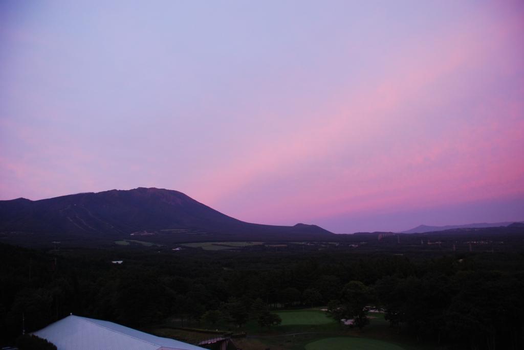 ホテルの部屋へ帰ると、窓の外が茜色に染まっています...
