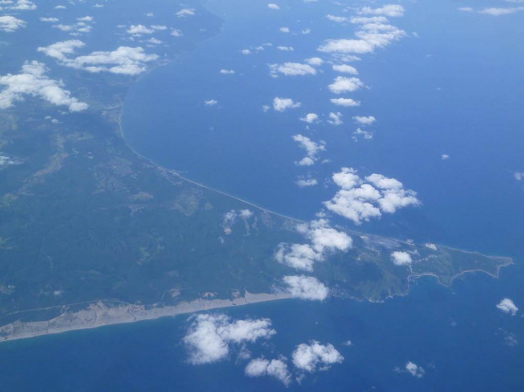 新千歳空港→羽田空港、機内から撮影。下北半島。