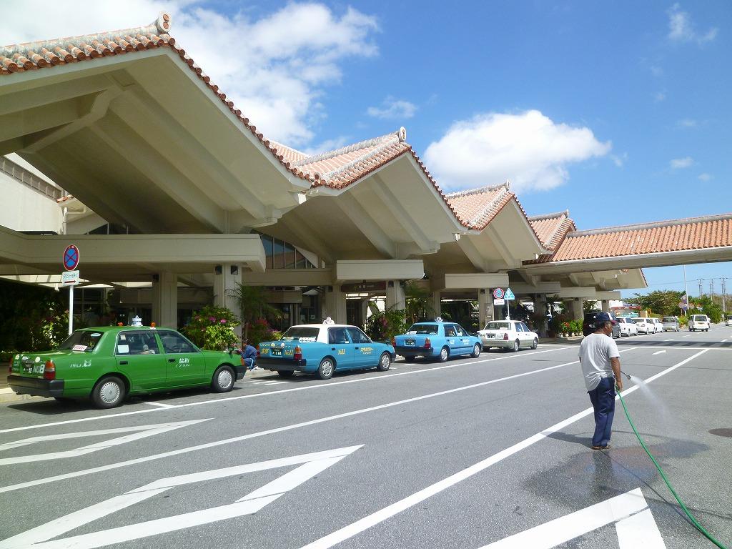 宮古空港玄関、シーサーがでーんと飾られていた。