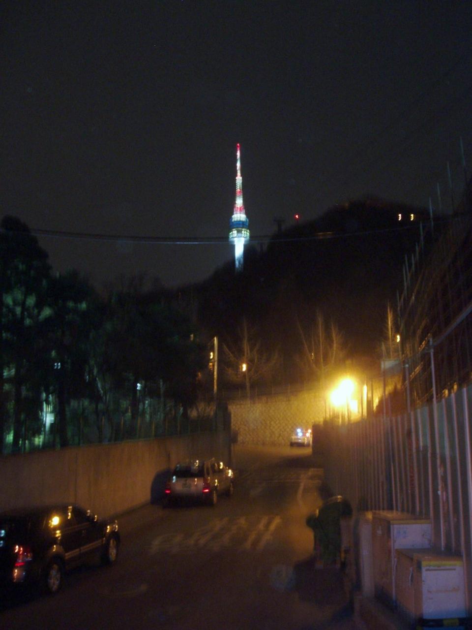 タワー広場から見たソウル市街地の夜景。夜は本当に凍えるほど寒いです。