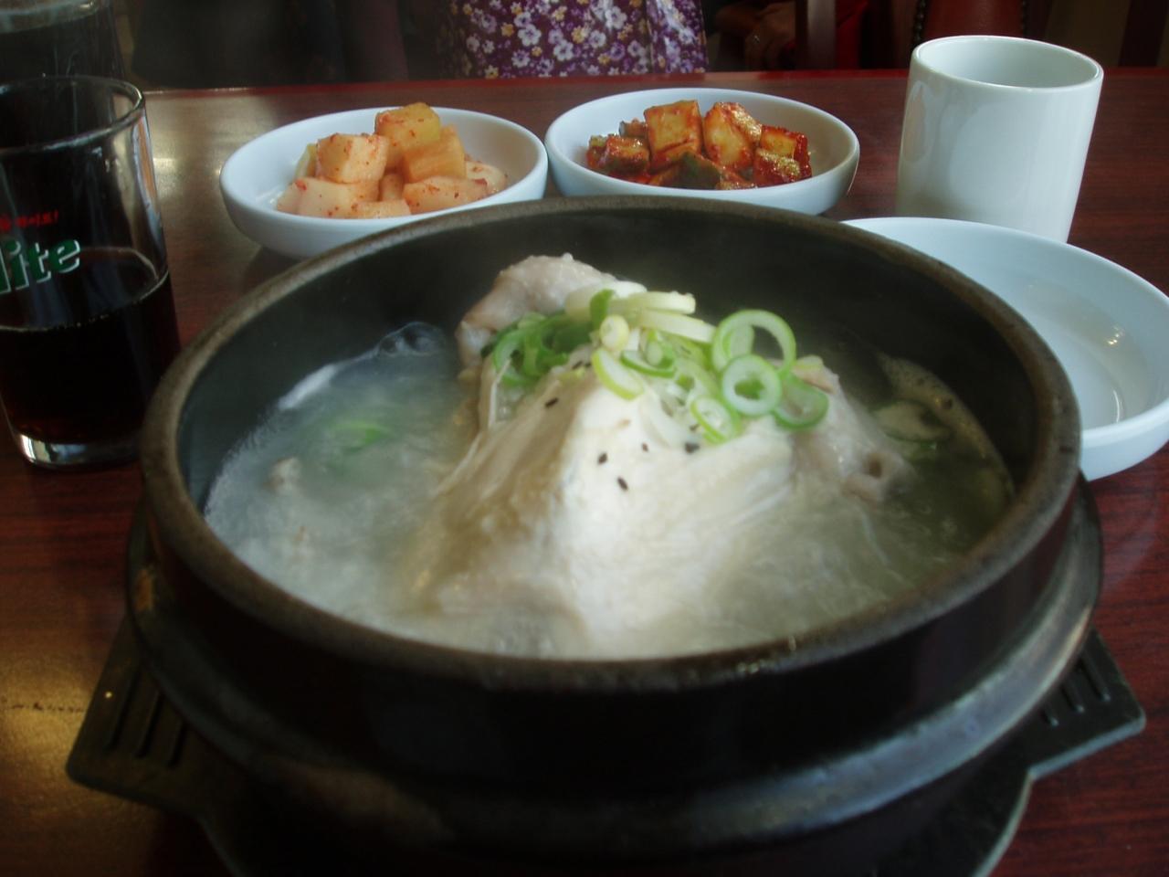 朝、韓国名物のサムゲダンを食べました。朝も寒いので体が温まって本当に美味しかったです。 -