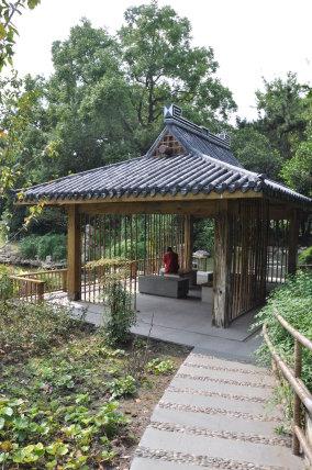 蓮池のそばには和風の涼亭が。先客がいました。