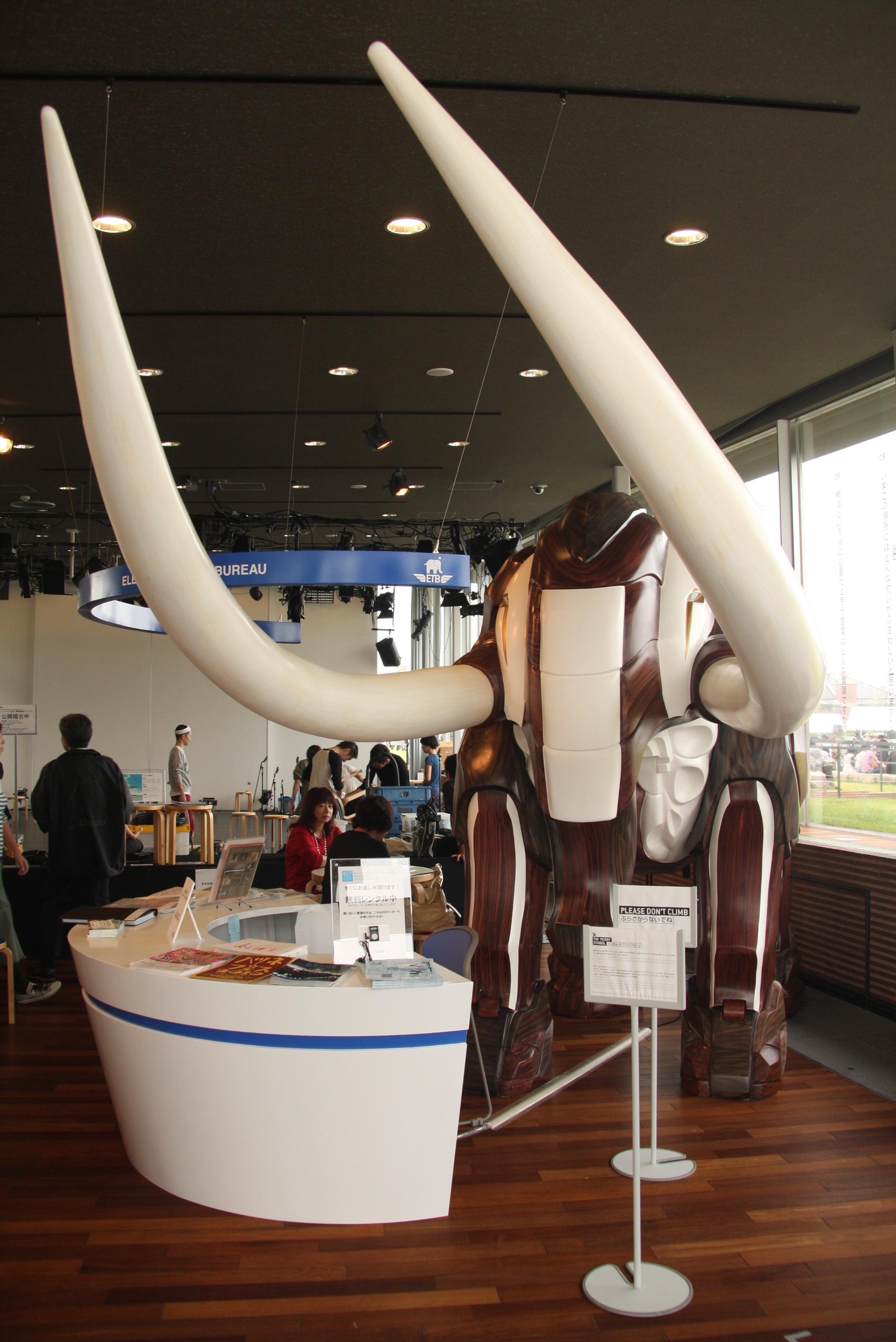 象の鼻パークホールのシンボルオブジェ”ペリー(時をかける象)”