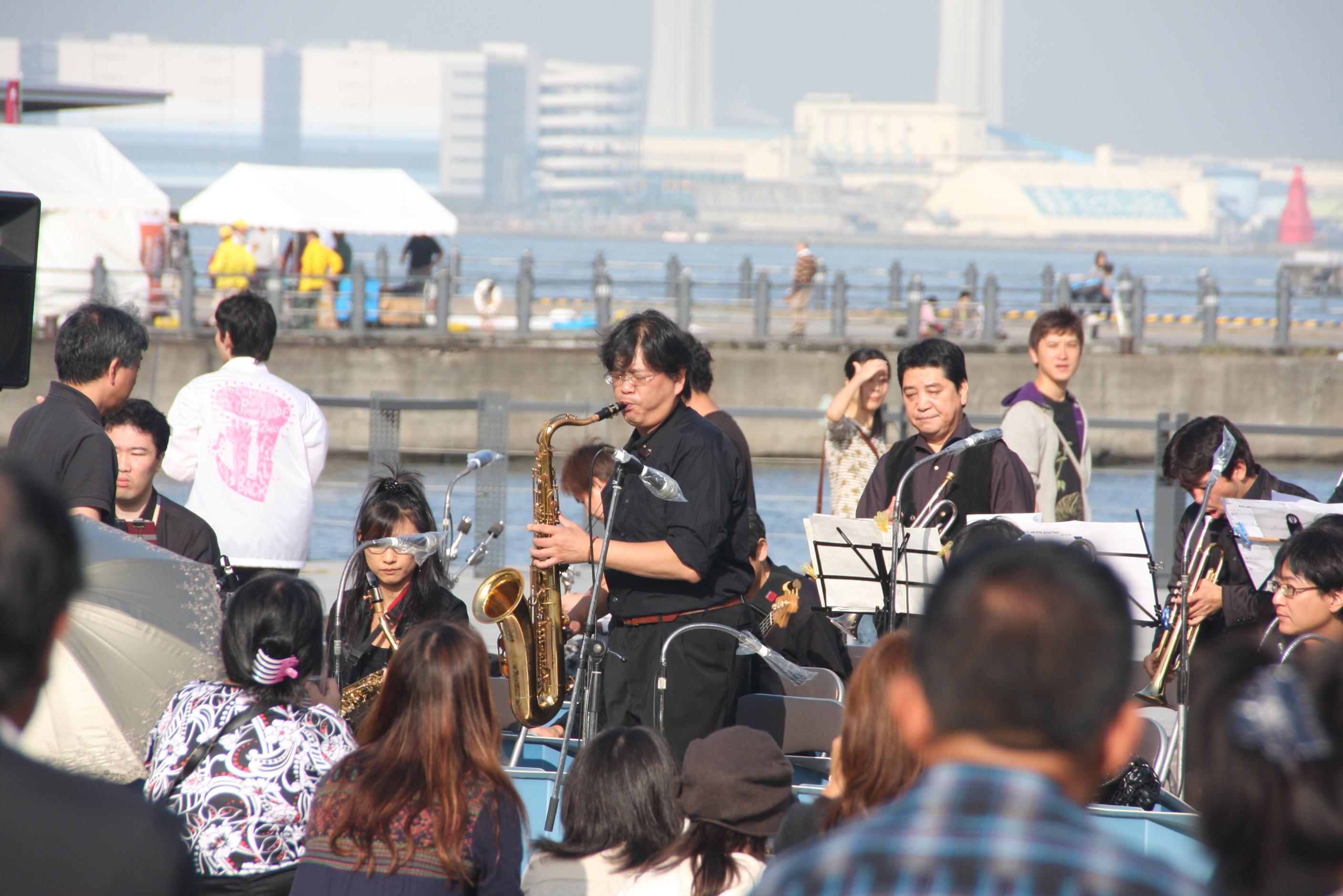 潮風・・・ を 感じ、 港町! 横浜 の 街角 に、 たたずめ・・・ ば、 今日 は、 ジャズ の 生演奏! が 聞こえる。 (♪)