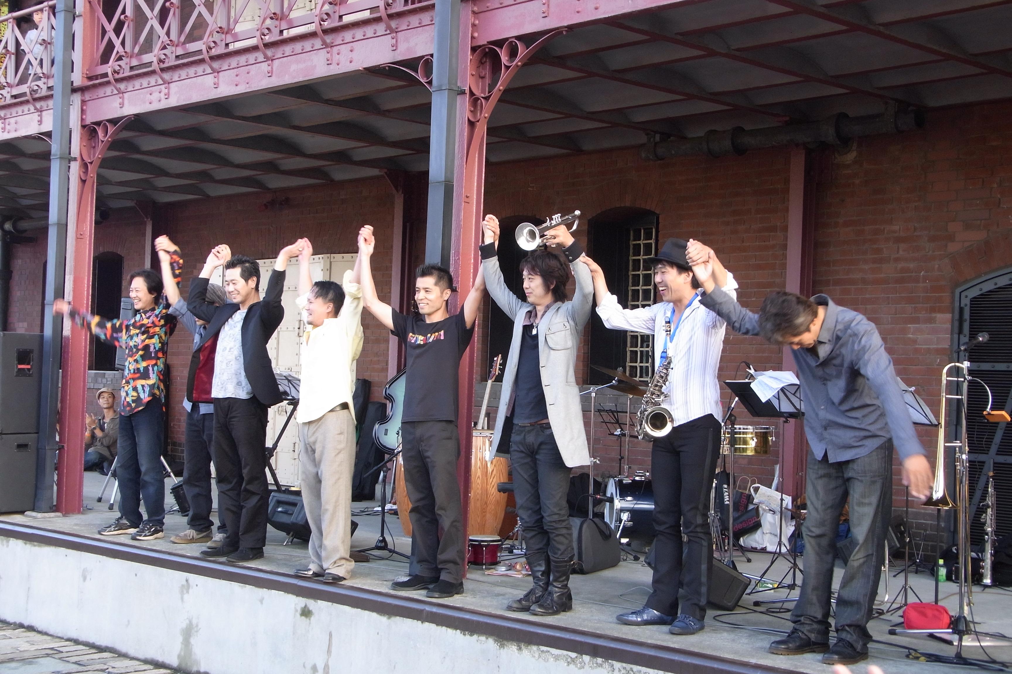 約1時間の演奏を終え、挨拶するメンバー