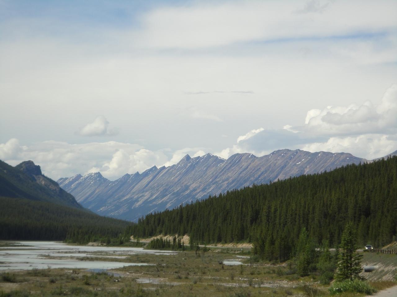 屏風のような山並みが続いています。この山のずっと奥に本日の目的地、ジャスパーが
