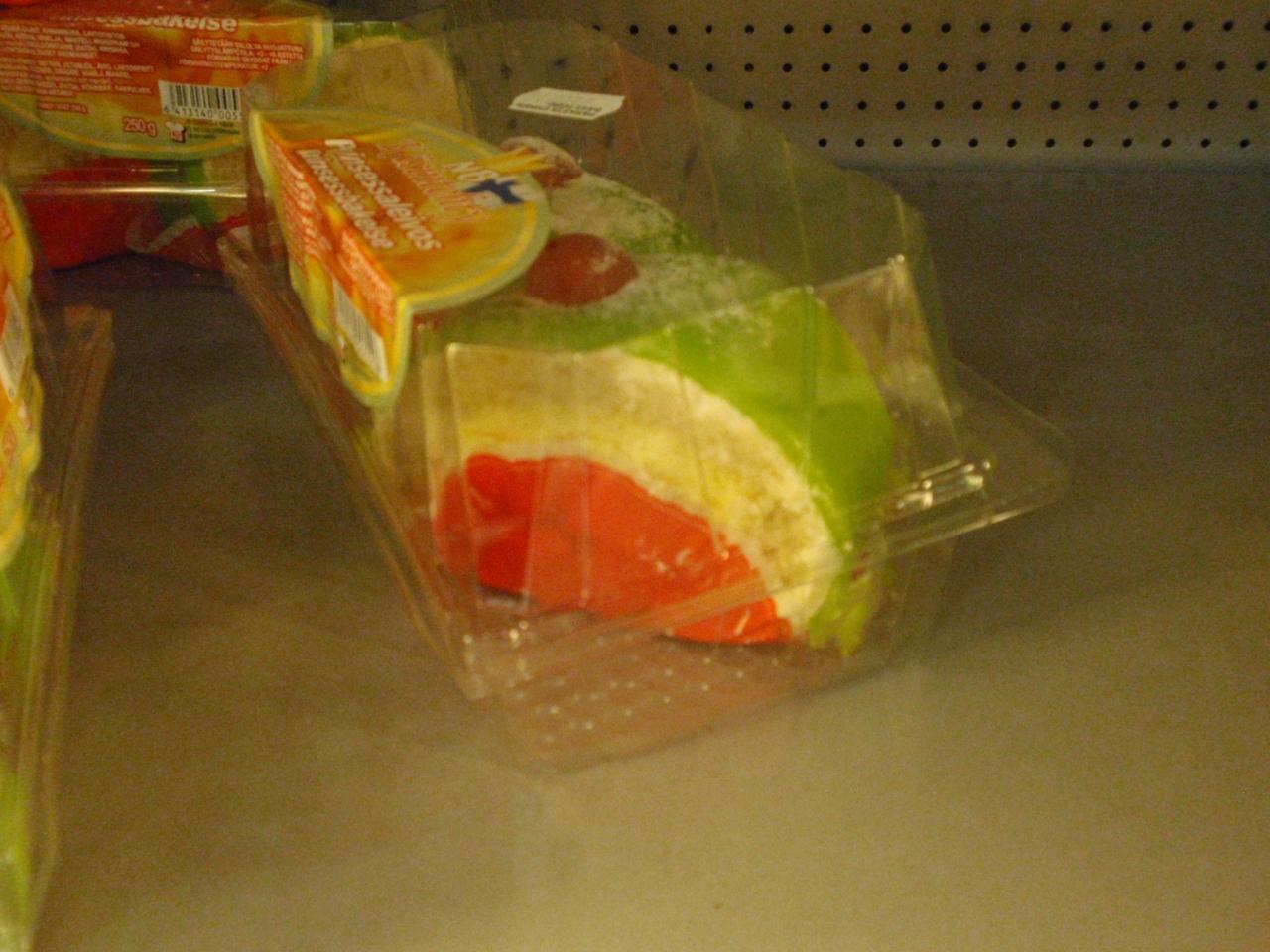 カンピ駅にあるスーパーにあった色がすごいケーキ