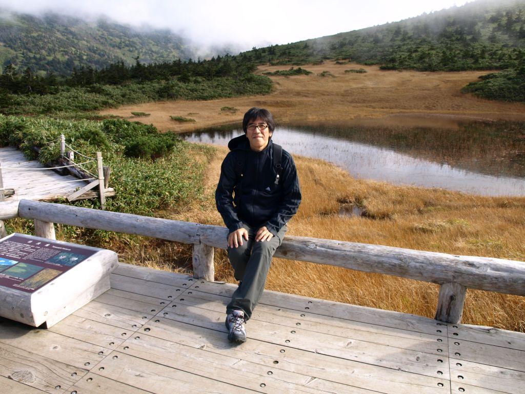 湿原展望台で一休み!今回はまだ軽装でもOKだったが、上着は必須。空気がとてもおいしい!!