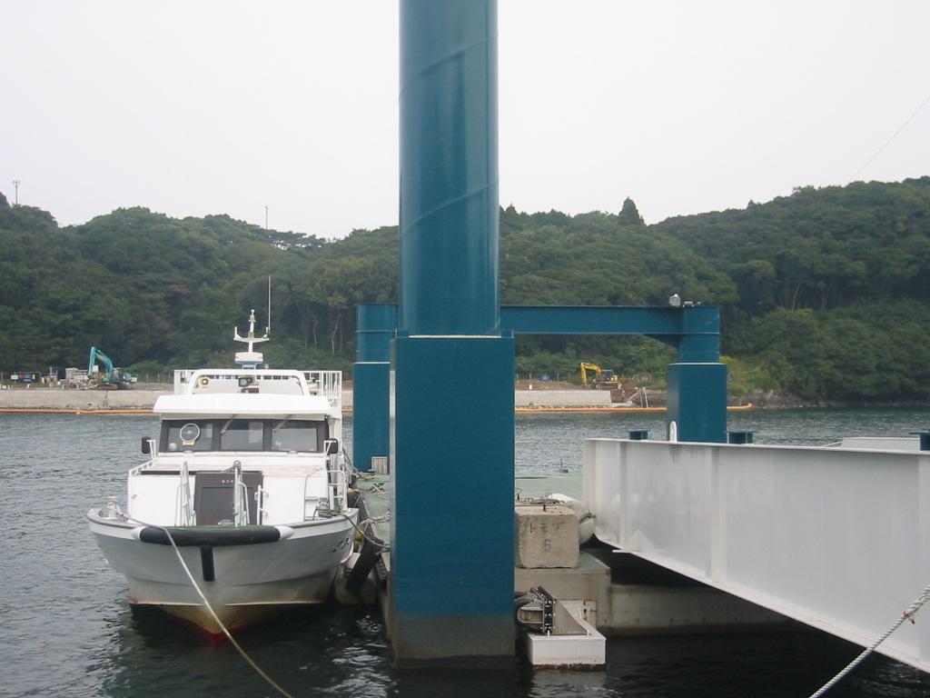 新装成った桟橋と連絡船です