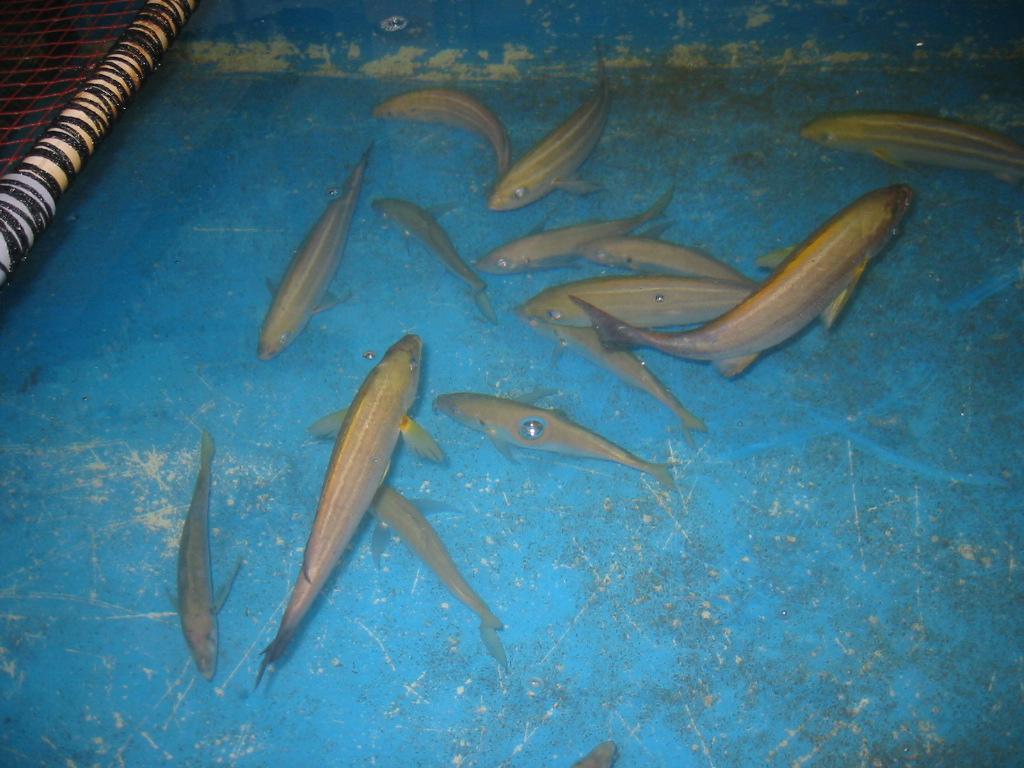 活魚店内のアジの遊泳です