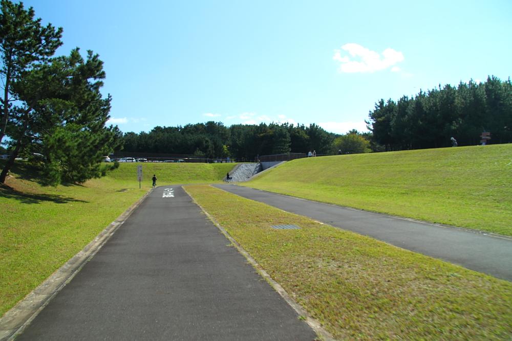 サイクルロードにて、その3。公園西口(確か…)方向を望む。