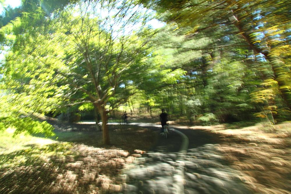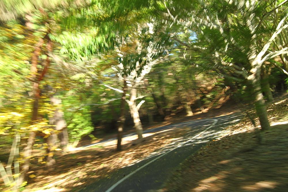 自転車で疾走!(本当はのんびり走ってますけど、カメラ設定で)。