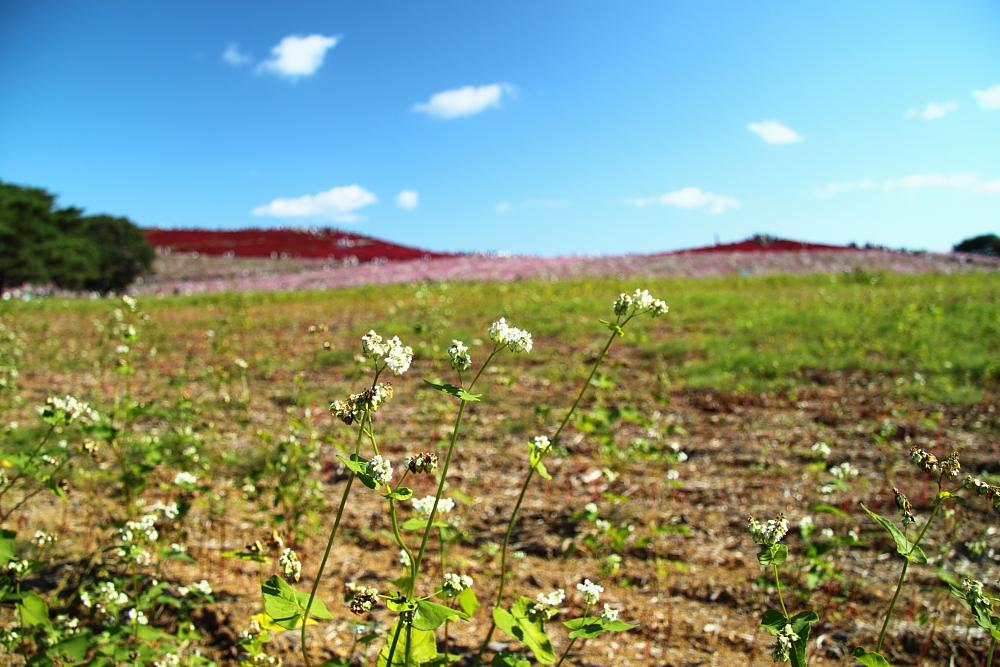 蕎麦の花の向こうに広がる丘が、今回のメインステージ。
