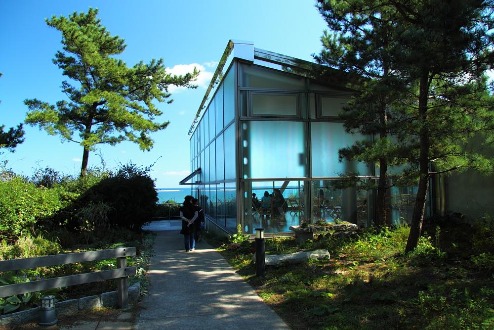 海側に立つグラスハウス。