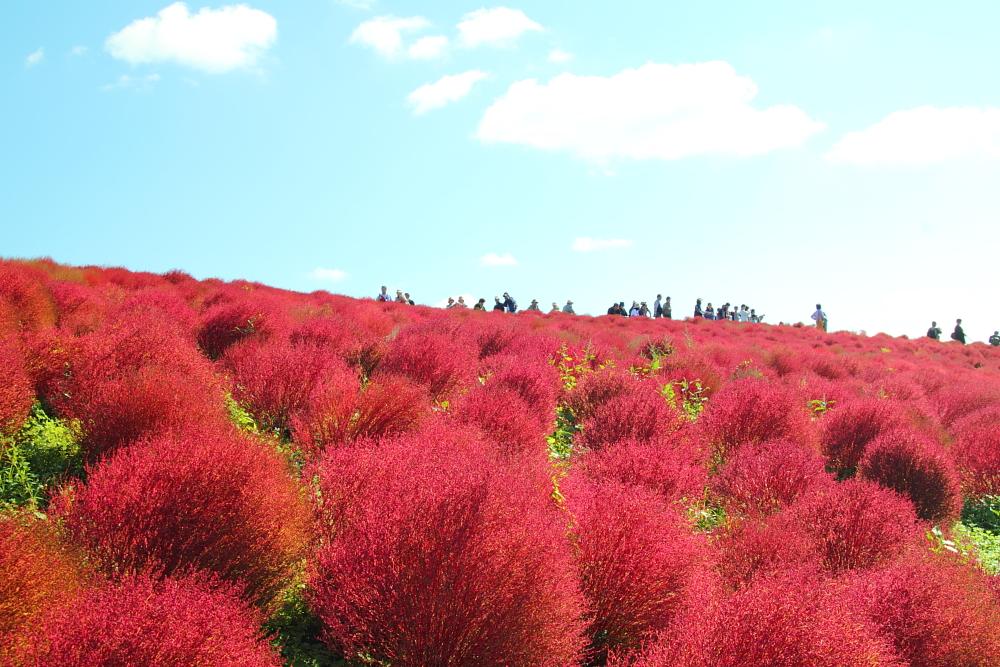 コキアで埋め尽くされる斜面。