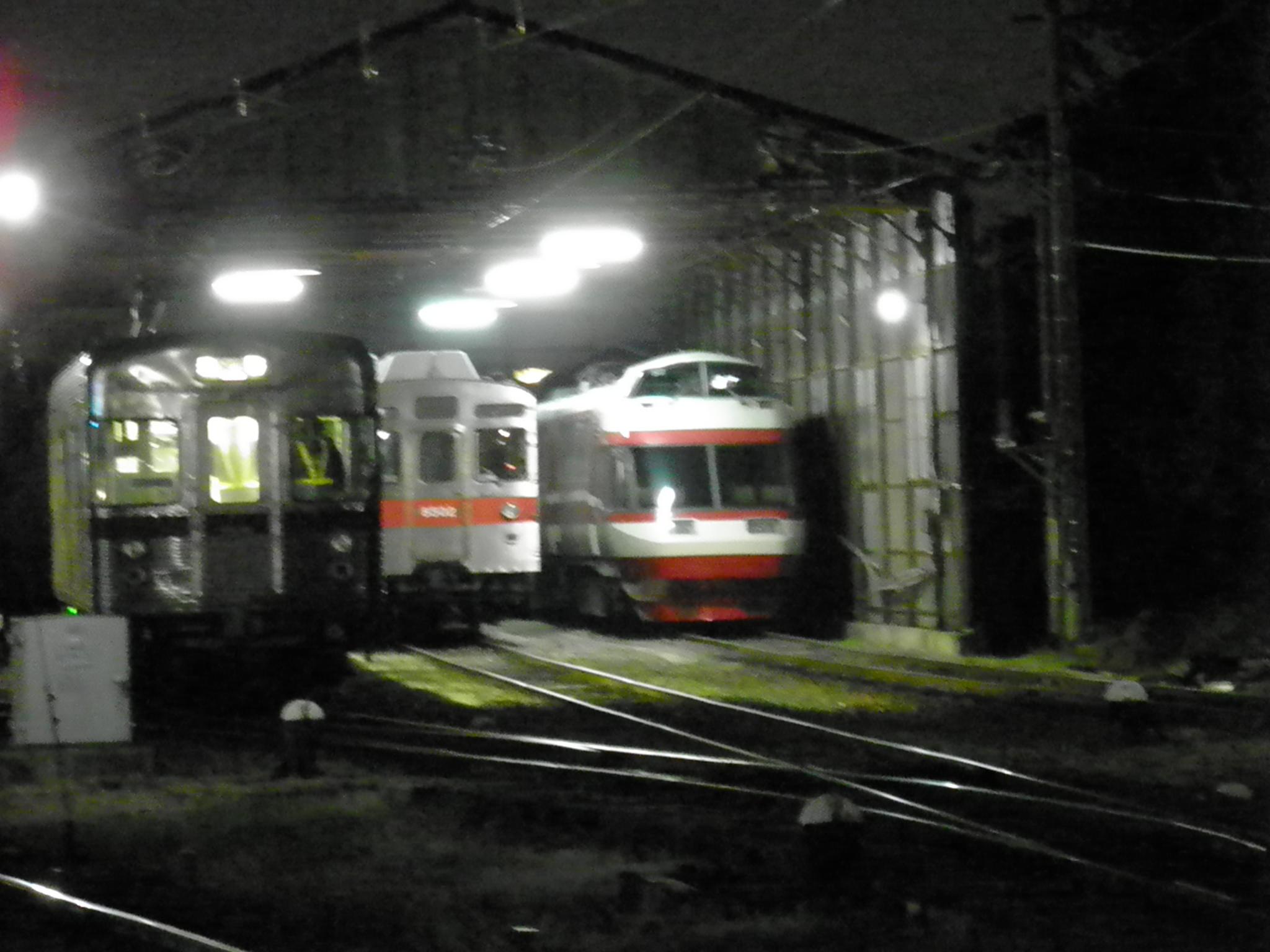 須坂に着く頃には真っ暗になっていましたが、小田急から移籍した10000系(長野電鉄では1000系)が車庫に止まっているのが見えました。