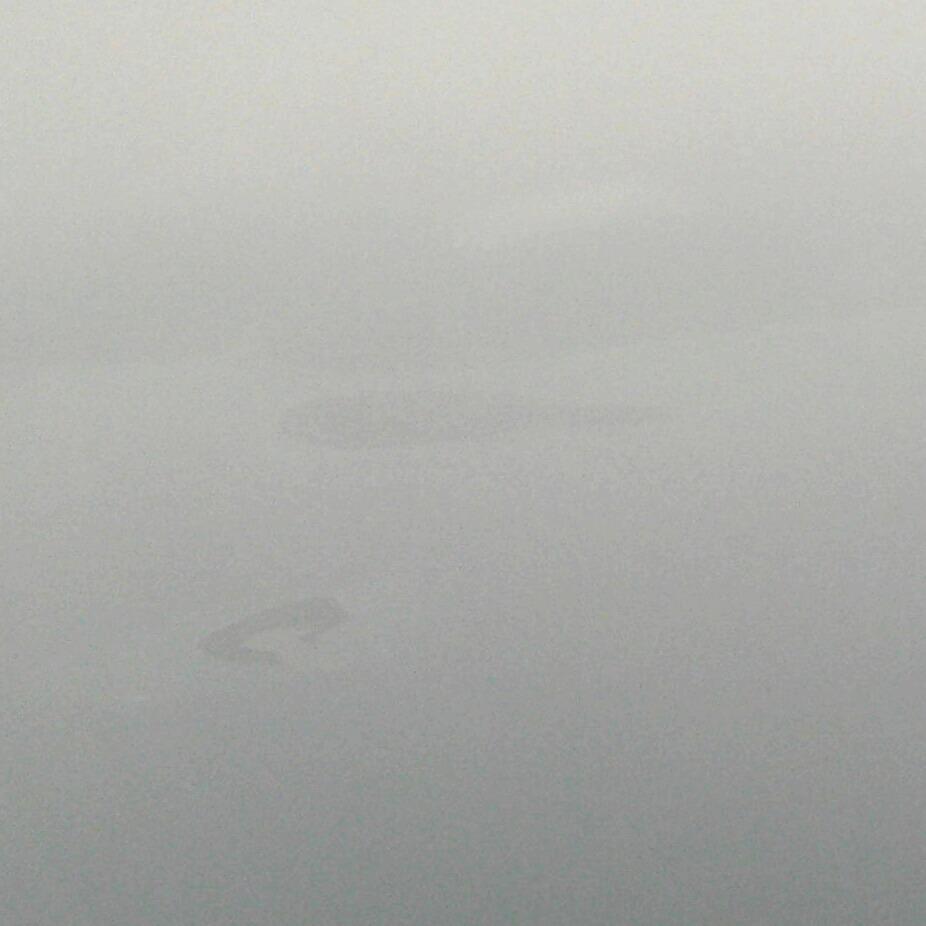 激しい雨音で窓の外を見ると、古い民家屋根の上に沖縄タワ−と三越