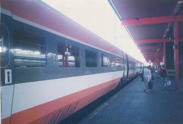 専用ホ−ムに上がると日本人の団体観光客がいっぱいで、まるでTGVが日本人専用の貸し切り列車になっている観すら感じられる。インタ−ラ−ケン>シヨン城>ジュネ−ブ>TGVでパリへのコ−スは、日本からの団体旅行のメインル−トになっているので、このル−ト沿いでは日本人旅行客がドル箱的存在になっているのではなかろうか。彼らで混雑する二等車をしり目に、こちらは一等車に乗り込む。車内はガラ−ンとして空いている。