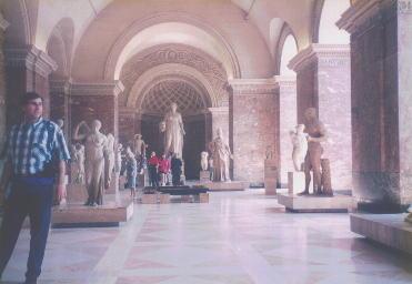 ガイドの案内はル−ブルの目玉、「ミロのヴィ−ナス」や「モナリザ」などの幾つかだけである。一時過ぎ館内で解散となり、その後は各自で自由にご見学をというわけだ。そこでまず、館内のカフェテリアに入り、チキンと パンにエヴィアン水で昼食を取る。代金約千円。それ以後三時過ぎまで、広大な館内をゆっくりと探訪して回る。もう一度、ミロのヴィ−ナスとモナリザをじっくり見たくて訪れる。ヴィ−ナスとは、約三十年振りの再会で感激である。京都であったル−ブル展で一度お目にかかったのが最初である。何度会っても、何度見ても、やはり彼女の姿は美しく、人の心をとらえて離さない。