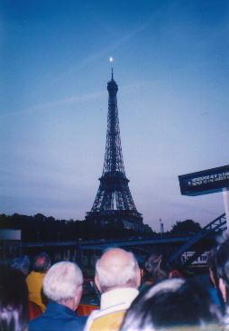 パ リ・・・ パリの空の下、エッフェル塔に半月が輝く