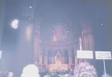 そこは観光客であふれている。中に入ると、高い天井と美しい柄模様に彩られたステンドグラスに囲まれた寺院の内部が壮観である。ちょうど、少年少女合唱隊が聖歌を歌っており、八百年の歴史を経た重みを見せる寺院内には荘厳な雰囲気が漂う。