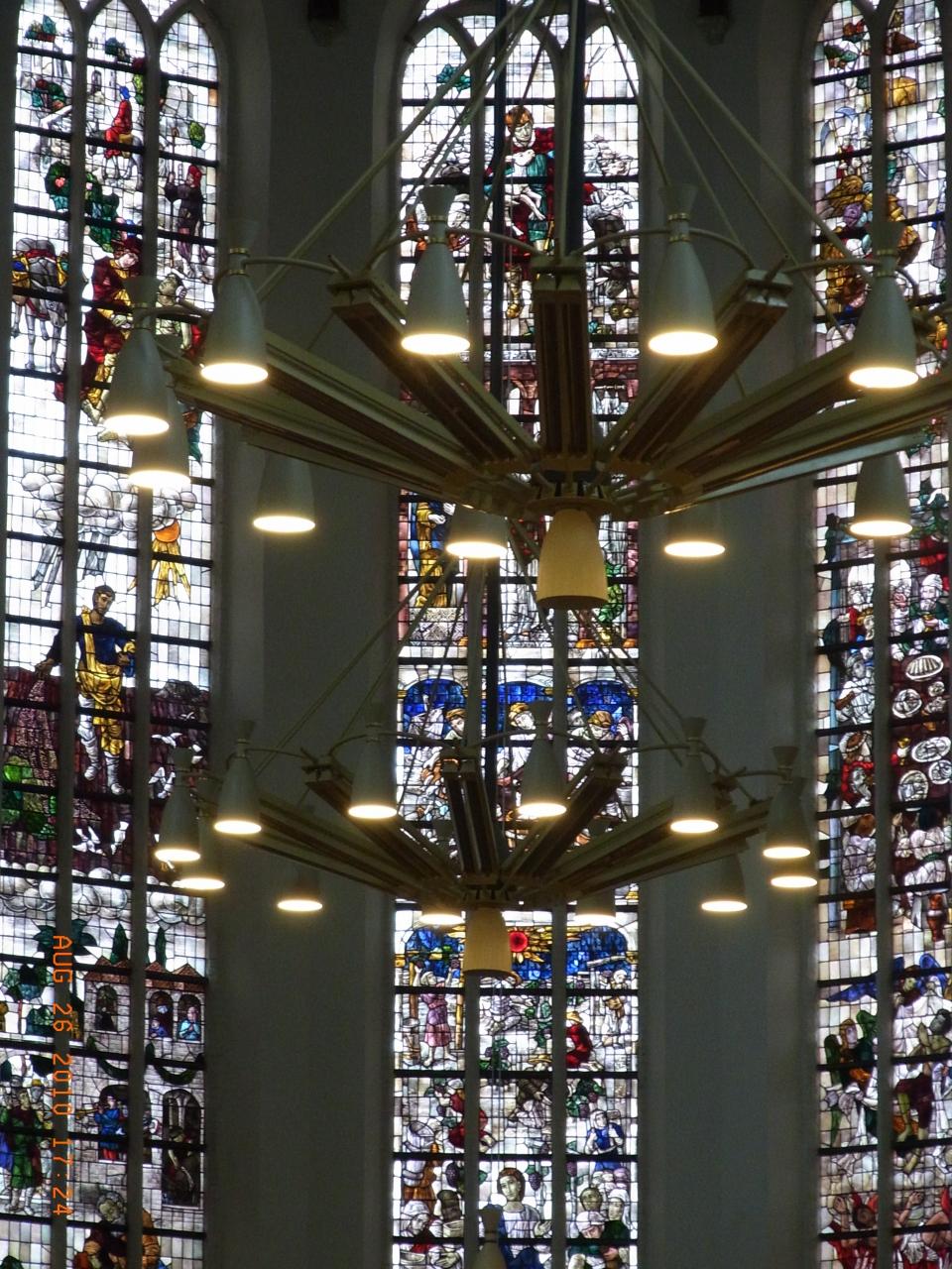 内部のシャンデリアとかも派手な装飾があるわけでもなく、どちらかというと簡素なものなんだけど、後ろのステンドグラスとのバランスがいいんだと思う。
