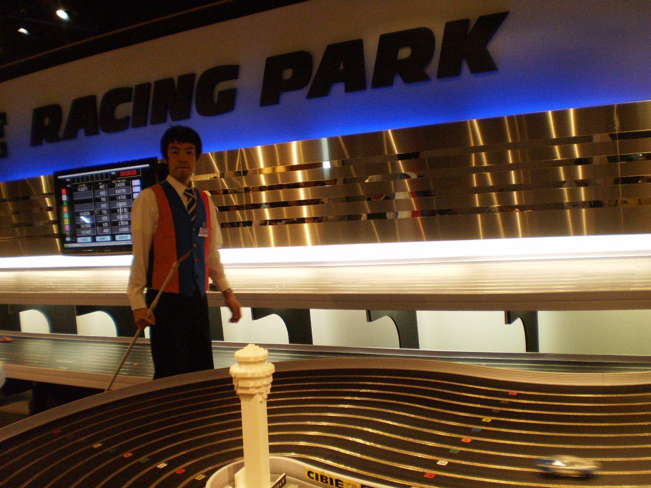 5F MARKET PLACE TOKYO POP TOWN内 博品館TOKYO PARK。全長50Mのスロットサーキットがあり、子どもたちやお父さんたちがおおはしゃぎ笑
