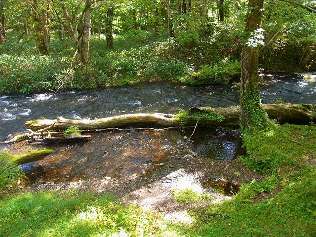 川と倒木と緑が何とも言えない風情。