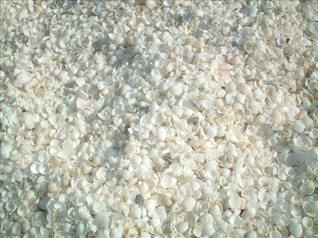ちっちゃな貝の海岸が何キロと続いています。