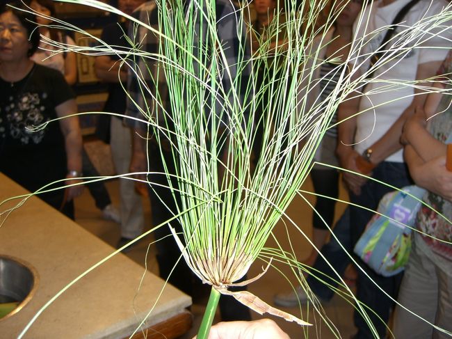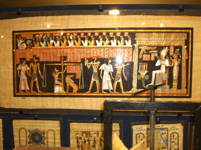 パピルスにもニセモノがあるようで、透かして見た時に縦横に編まれているか、いないか? 又、本物は少々曲げても折り目が付かないけれど、ニセモノはパリパリと折れてしまうそうです。 -
