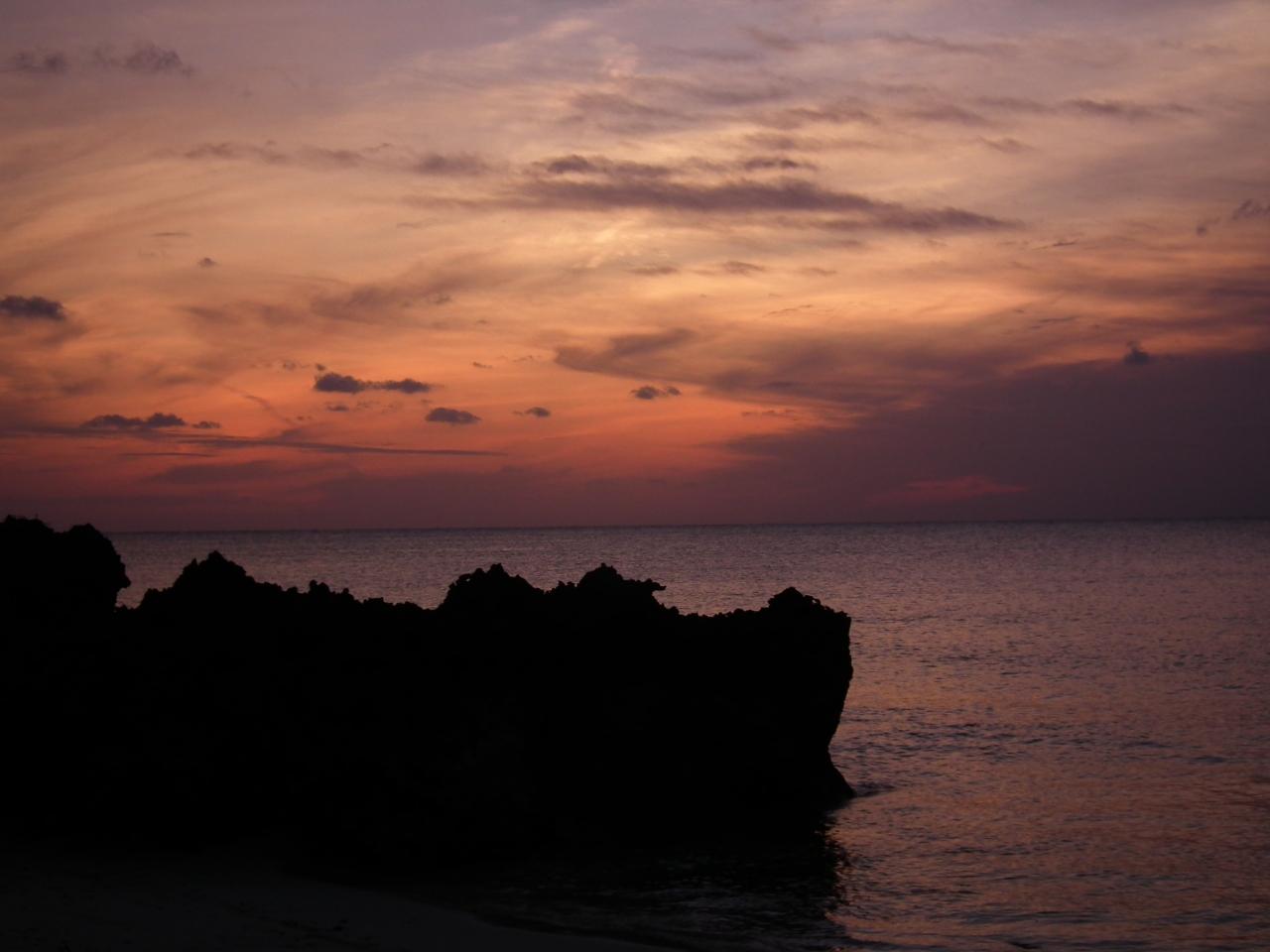 勝連荘に泊っている方と夕陽を見るためビーチへ