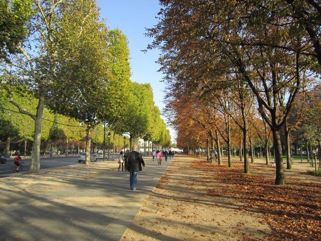 マロニエ(赤く色づいています)とプラタナスの並木道