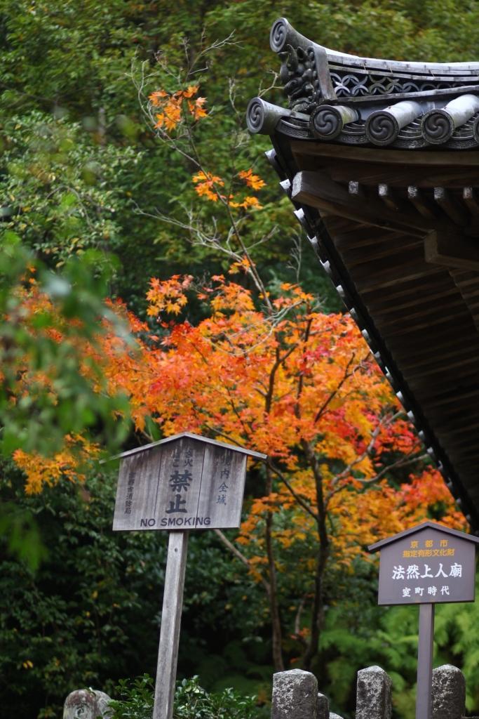 その後直ぐに、行った事のない今一つの紅葉名所へと向かうつもりでしたが、嵐山に向かう途中で「二尊院」の参道が色付きを見せており、吸い込まれる様に拝見しました。