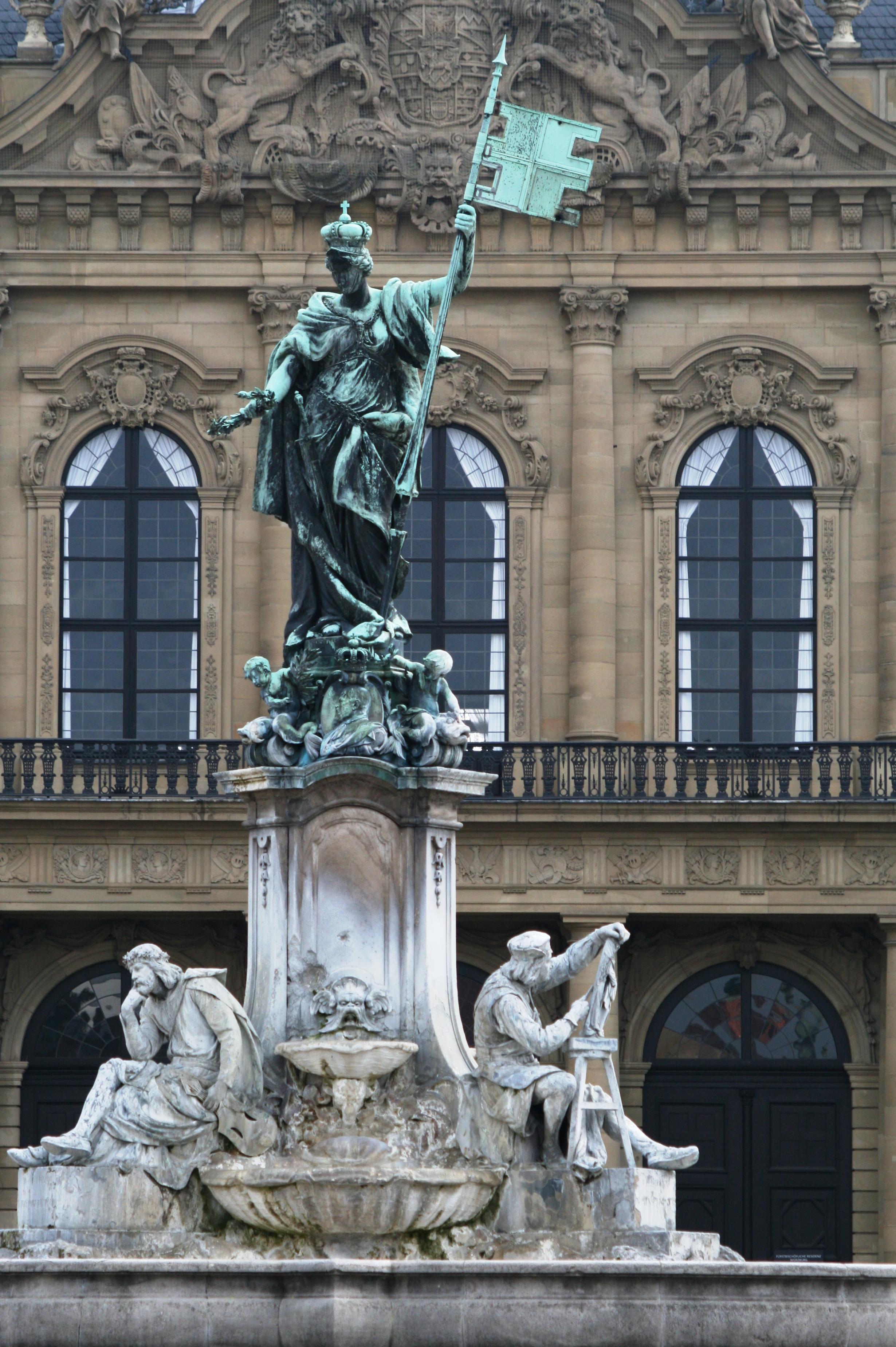 広場にあるフランコニア噴水の光景です。女神フランコニアを中心に、周りにヴュルツブルク所縁の三人の像が取り囲みます。