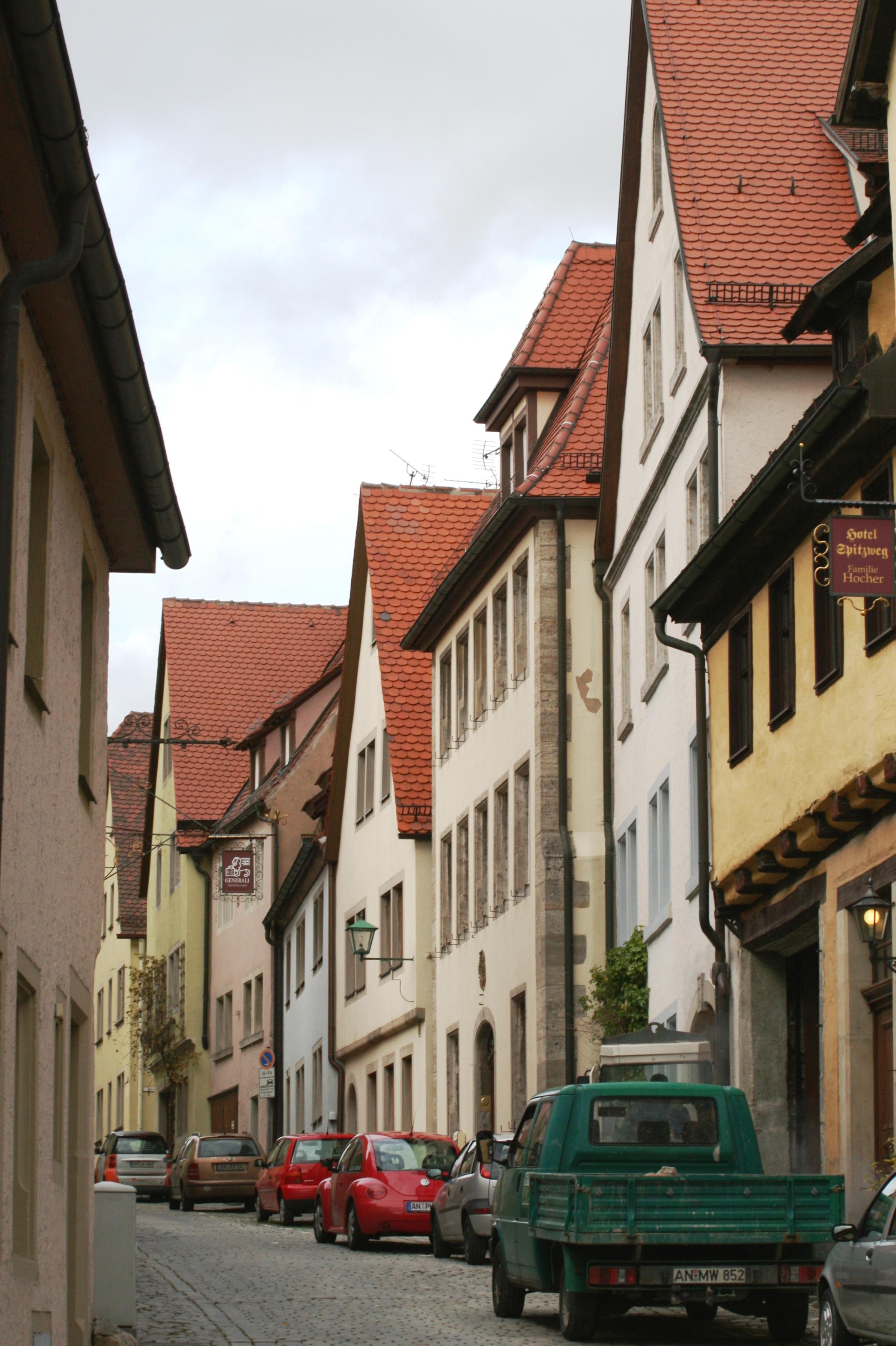 同じく、城壁の中の街並み光景です。こちらもメインストリートから枝分かれした脇道です。街並み光景にも、ドイツ人堅気の律義さが見てとれるようです。