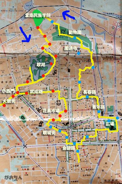 後編は回族の集る順城街から広場、園通山を経由して雲南民族学院まで歩く。