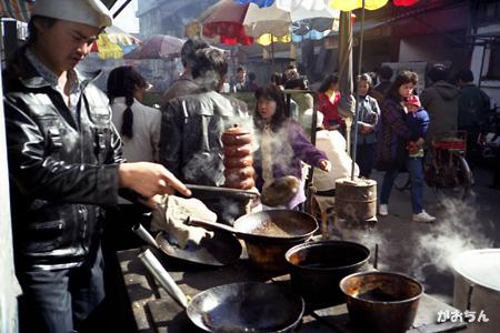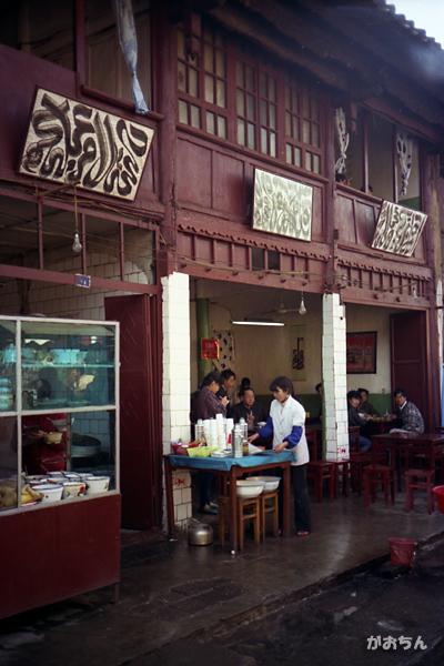 古い通りを眺めながら食事をすると、解放以前の中国にいるような気分になる。 -