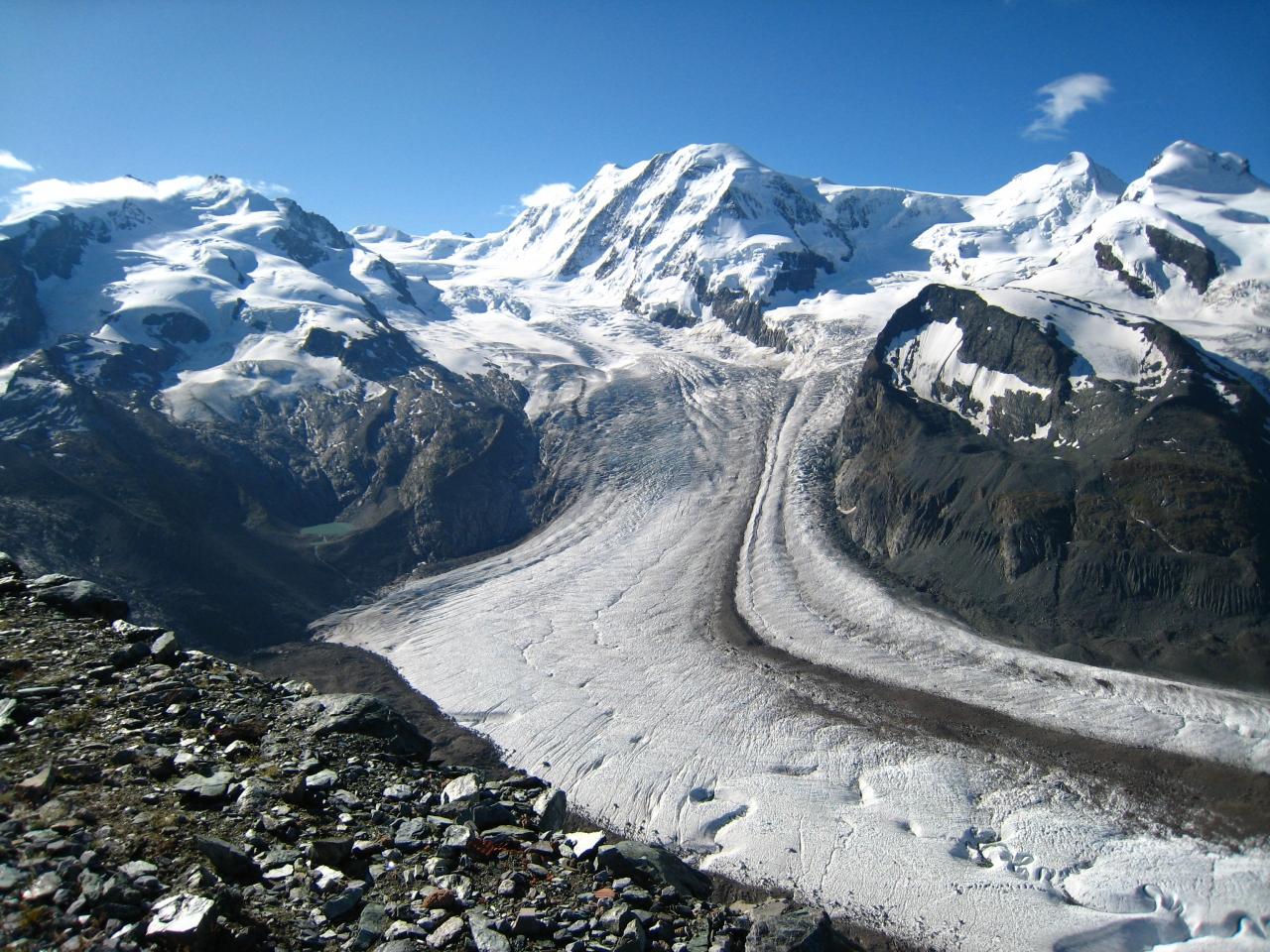 4000メートル級の名山に取り囲まれており、雄大なアルプスの山々や氷河を存分に満喫できます。