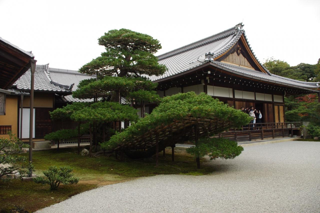 庭園その2.向こうに見えるのはお茶室。足利義政が考案した4畳半のお茶室だそうです。本堂を歩くと解説が流れて、「お茶室は向こうに見える衣笠山を眺めながらの設計…」とか言われたんですが、