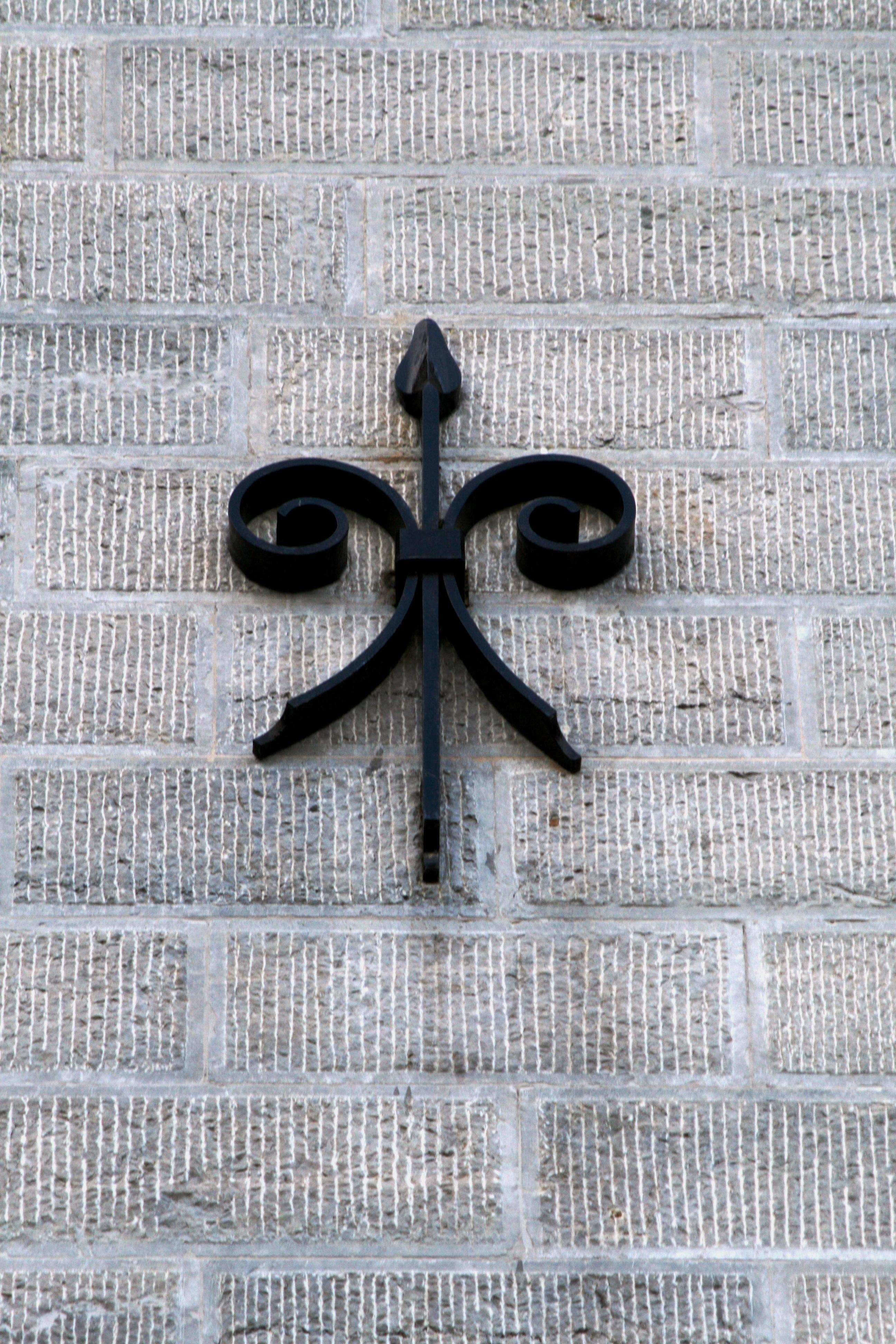 お城の壁にあった、紋章のような飾りです。ヤジリをデザインしたものでしょうか、防錆処理をしたらしい金属製でした。