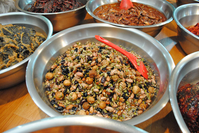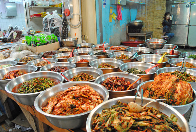 韓国ですから、市場にはいろいろなキムチも売っています。