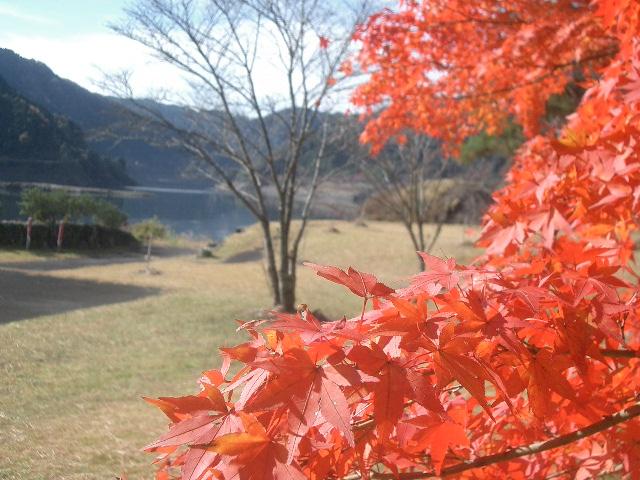 香嵐渓の次に、奥矢作湖まで足をのばしました。湖畔の大野公園の紅葉が、それはそれは、見事でした。