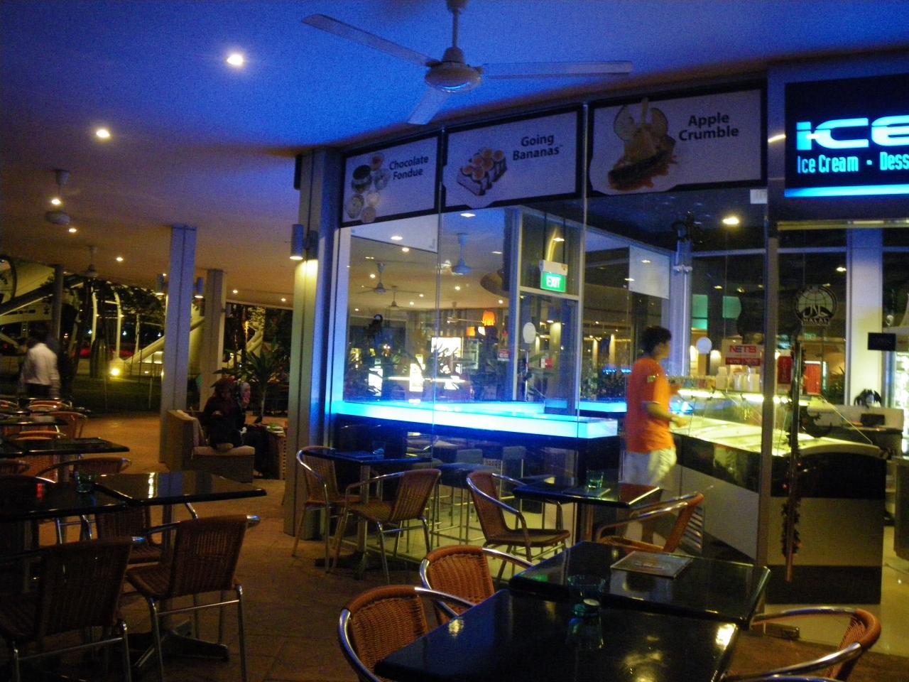氷っぽいものを歩きながら食べたいと思って、アイスクリーム屋さんに入ってみたら、氷がなくて残念。