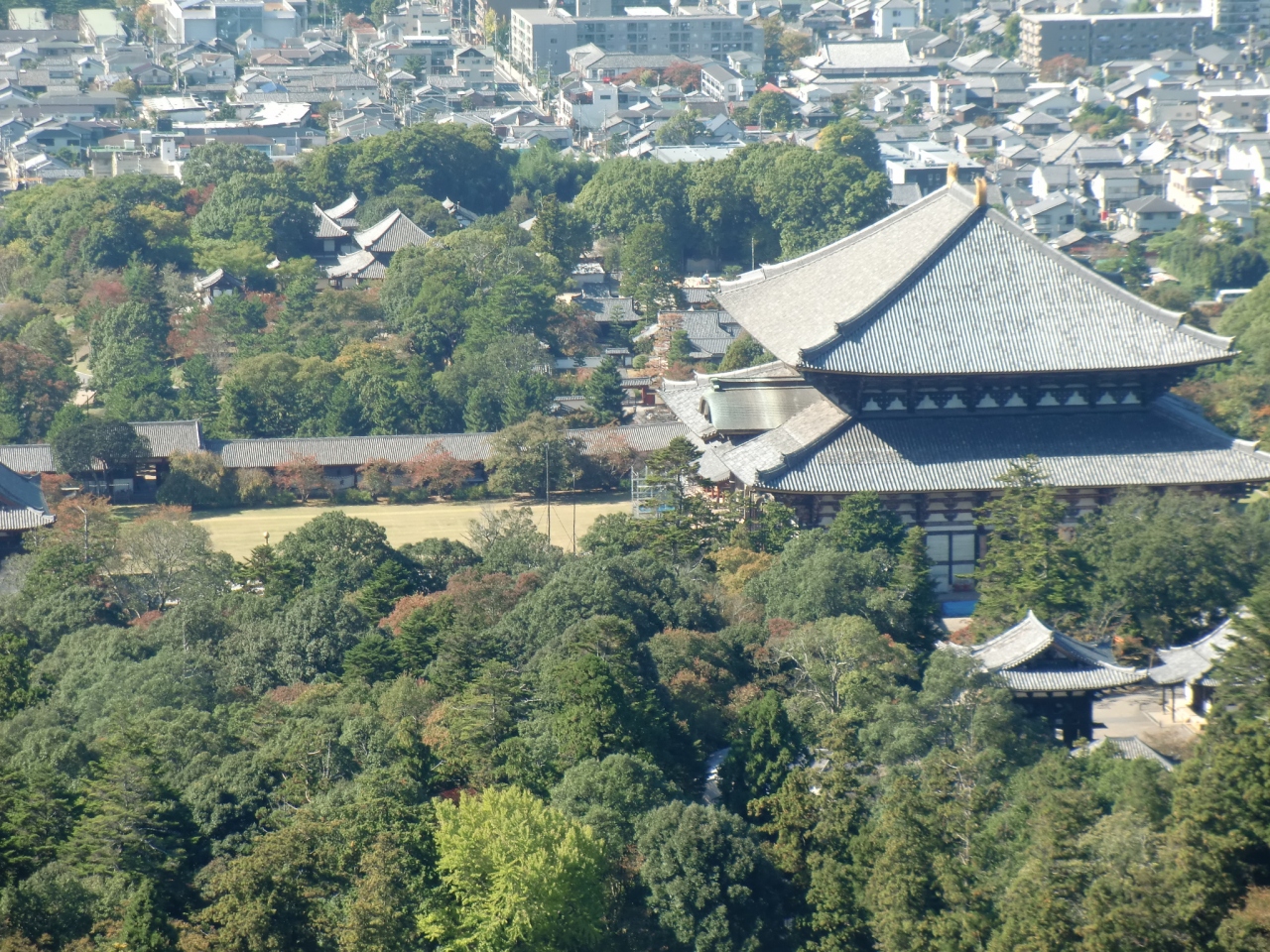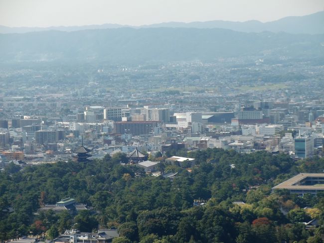 少し登って振り返ってみると、紅葉の中に奈良の町が映し出されました。
