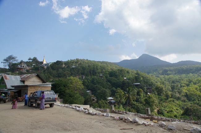 さて、ピックアップトラックに乗せられて、ポッパ山へ。物静かな運ちゃんと、一時間ほどでしたか、ウトウトしていたら山道へ。それらしき岩山が忽然と見えて来ました。