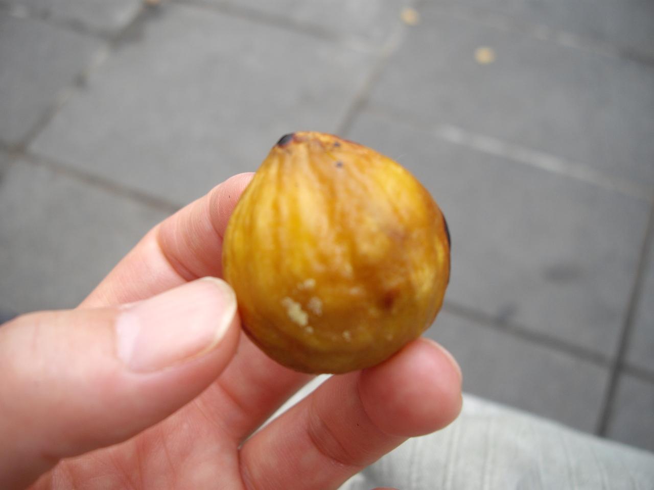 焼き栗を売っている、
